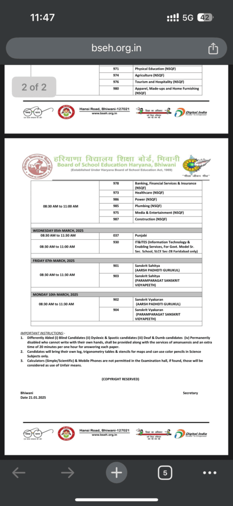हरियाणा बोर्ड की 2025 की परीक्षा के लिए, खासकर 9वीं और 10वीं कक्षा के छात्रों को पिछले वर्षों की तरह